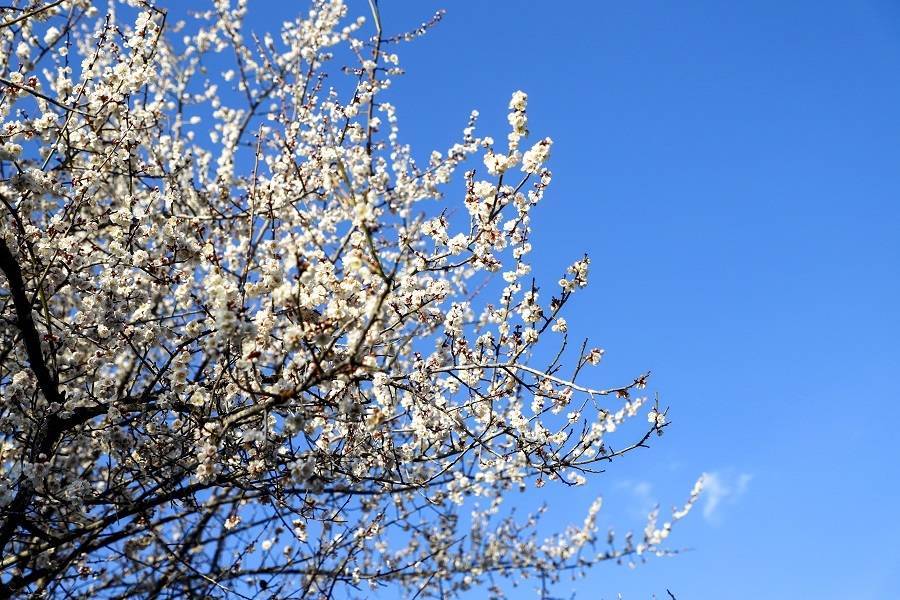 蓝天下绽放的梅花(2月9日摄)。劳海山摄